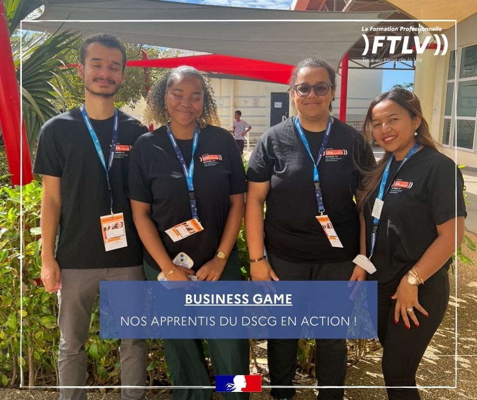 Le CFA Académique de La Réunion y a participé avec une équipe composée des apprentis en diplôme supérieur en comptabilité et gestion (DSCG) composée de Pauline DELNARD, Hugo AGELOU, Laïni KASSIM, Andrianivolala HOARAU , et accompagnée de leur formatrice Patricia BRAULT.