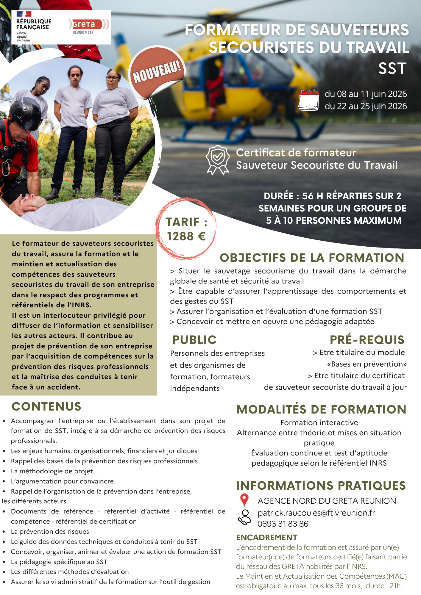 Le GRETA Réunion propose de nouvelles sessions de formation au métier de formateur de sauveteurs secouristes du travail (SST).