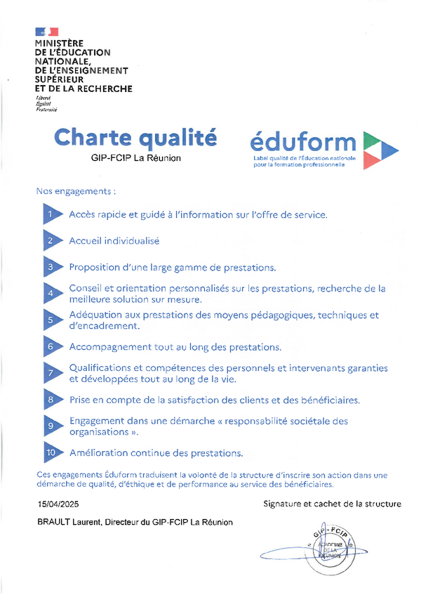 Chartes Qualité du GIP-FCIP et du GRETA Réunion