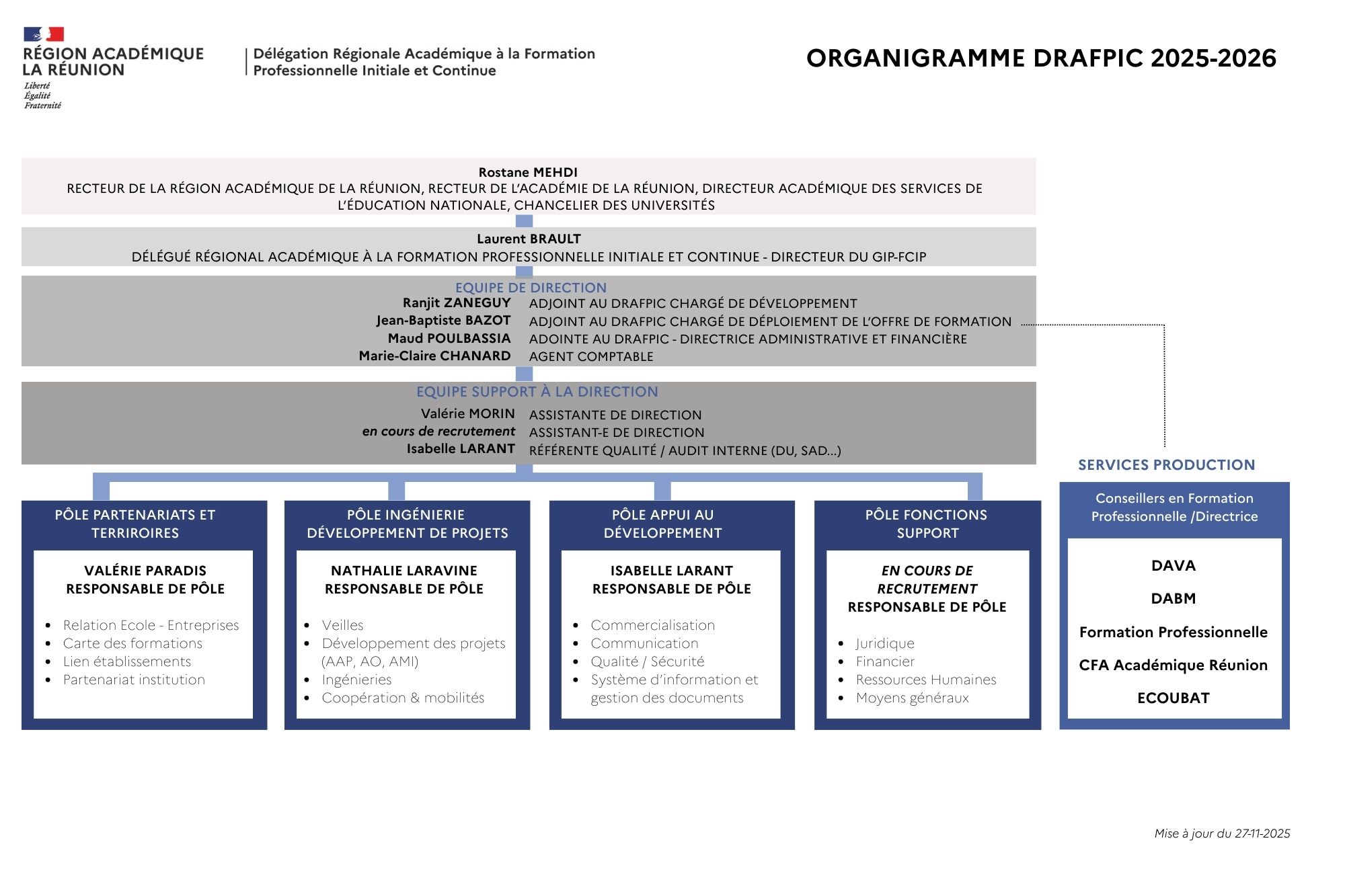 Les pôles et services de la DRAFPIC à votre service