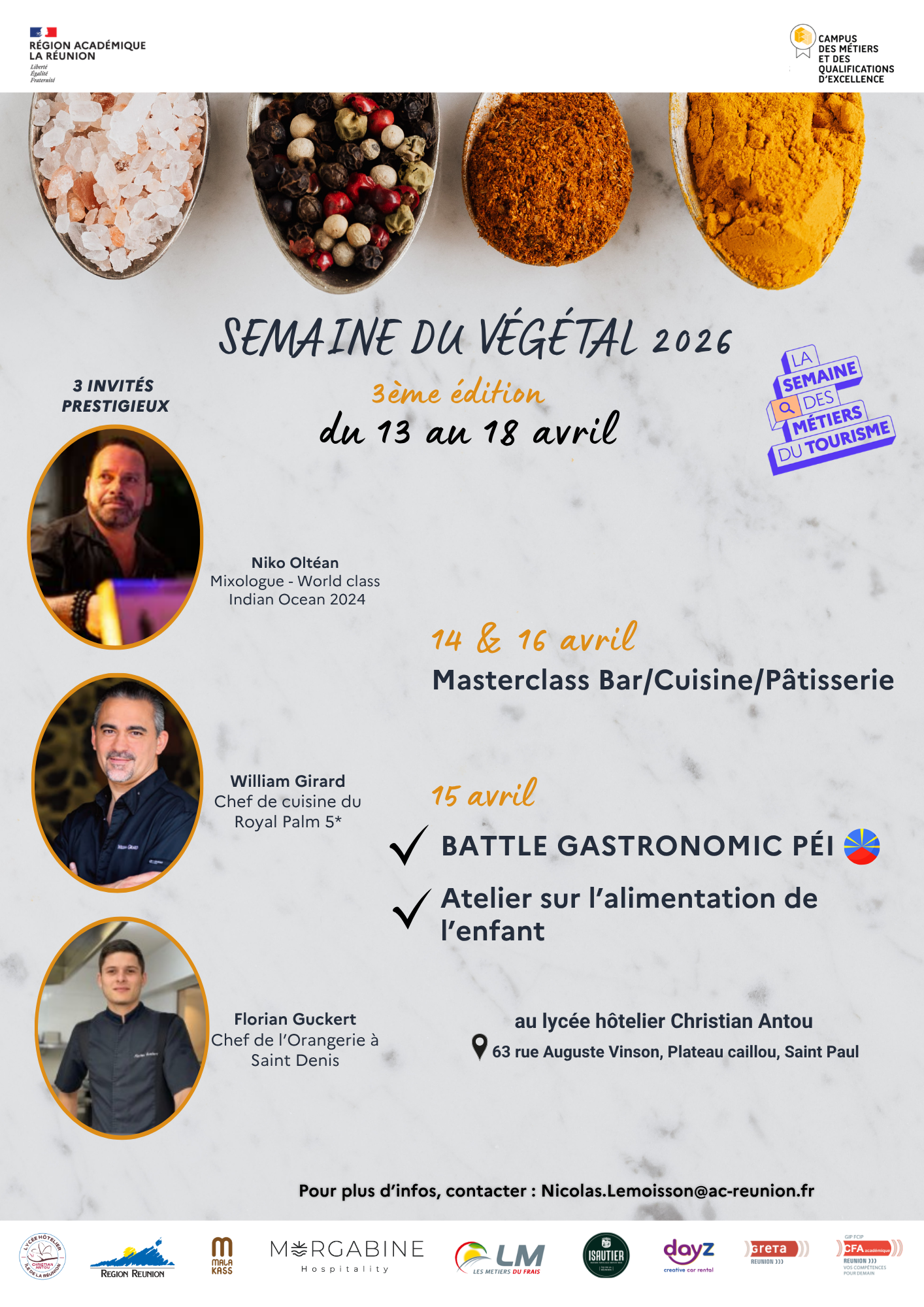 Du 13 au 18 avril 2026, le futur Campus des Métiers et des Qualifications Tourisme & Gastronomie La Réunion organise une semaine d’actions pédagogiques et de valorisation autour du thème :